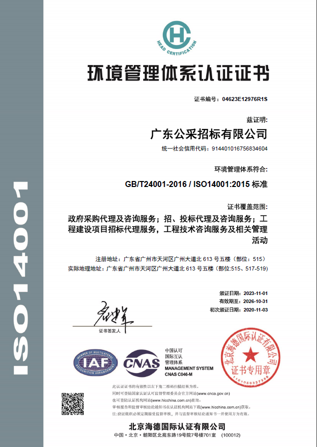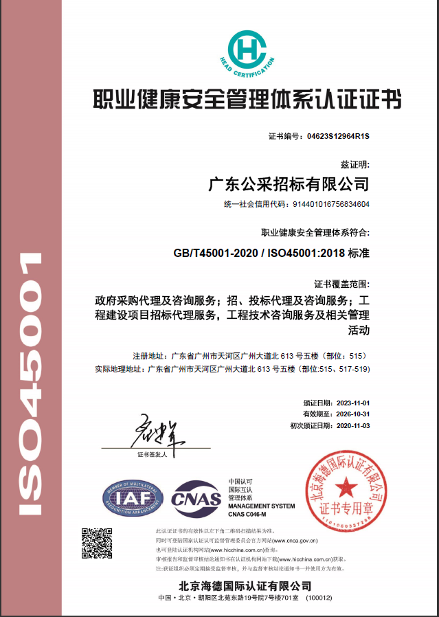 廣東公采招標有限公司通過ISO及OHSAS系列國際認證