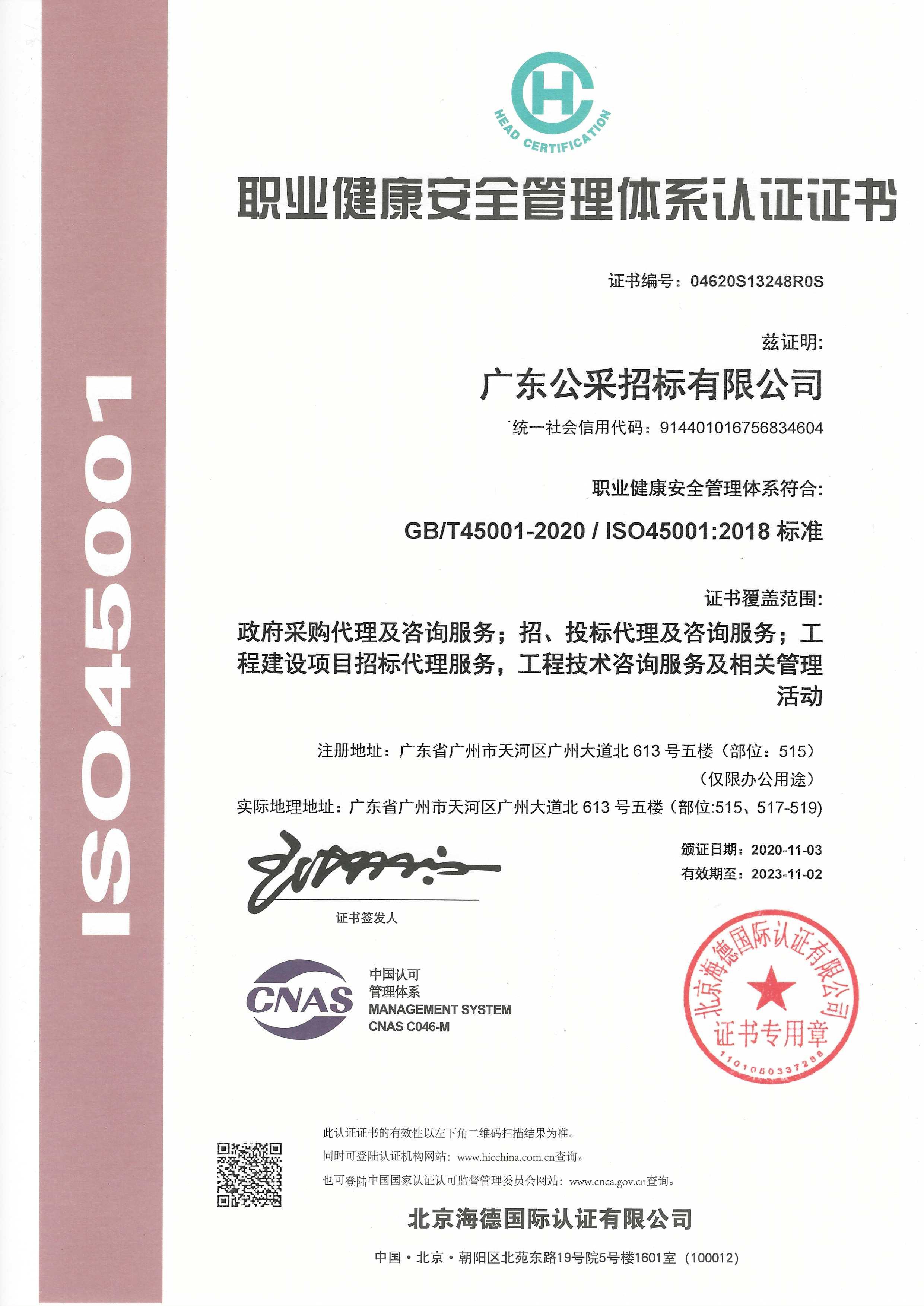 廣東公采招標有限公司通過ISO及OHSAS系列國際認證