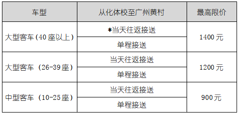 從化區(qū)第四中學(xué)至廣東黃村訓(xùn)練中心往返接送,大型客車(chē)(40座以上),服務(wù)次數(shù)不少于50次。