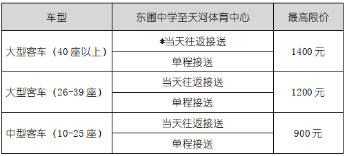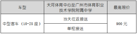 天河體育中心至廣州市體育職業(yè)技術(shù)學(xué)院附屬中學(xué),當(dāng)天往返接送,中型客車(chē)(10-25座),服務(wù)次數(shù)不少于200次。