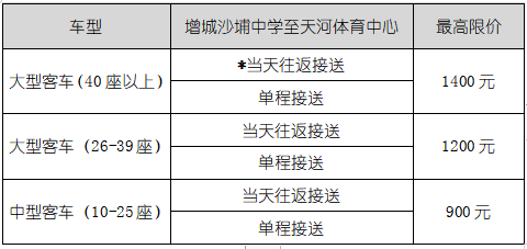 增城區(qū)新塘第二中學(xué)至廣州天河體育中心棒球場(chǎng)往返接送,大型客車(chē)(40座以上),服務(wù)次數(shù)不少于30次。