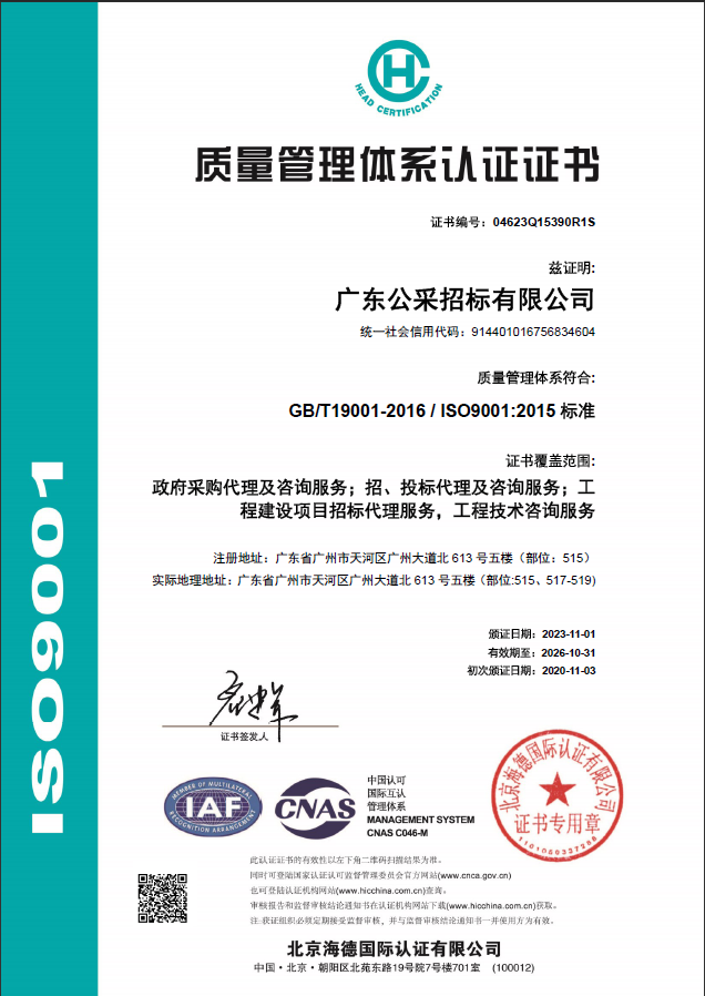 廣東公采招標有限公司通過ISO及OHSAS系列國際認證